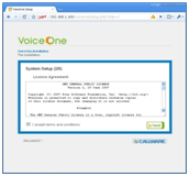 Step 1a Step 1b - Accettazione della licenza: per proseguire è necessario accettare le condizioni di licenza. La licenza proposta è la “GNU GENERAL PUBLIC LICENSE Version 3”. Maggiori informazioni su http://www.voiceone.it e su http://www.gnu.org