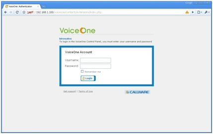 L’accesso Console è fornito attraverso la porta seriale presente sul dispositivo oppure attraverso una connessione SSH all’indirizzo IP configurato (default 192.168.1.100:22). Per accedere sono richiesti i dati di autenticazione. Il sistema VoiceOne prevede due utenti: l'utente voiceone e l'utente administrator. La password dell'utente voiceone viene specificata durante la procedura Web di Setup. Questo utente ha accesso ad una shell comandi ristretta attraverso l'uso di un menù a più livelli che guida l'utente nell'esecuzione dei comandi. I parametri di accesso di default per questo utente sono: