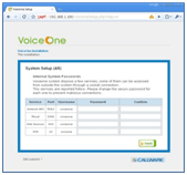 Step 3 - Password dei servizi di sistema: VoiceOne mette a disposizione diversi servizi, alcuni di essi permettono accessi dall’esterno attraverso connessioni socket. Per ragioni di sicurezza è necessario indicare una password per ognuno dei servizi in modo da prevenire connessioni non autorizzate.